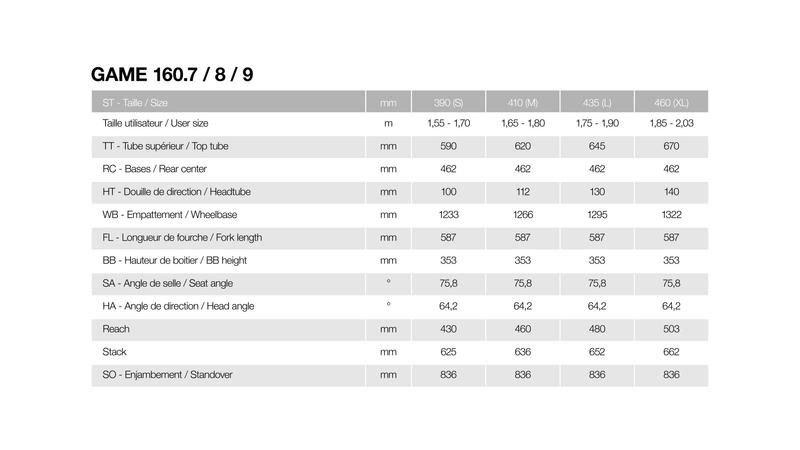 | 155 - 160 cm | 35 - 38 cm | 26" ou 27,5" |